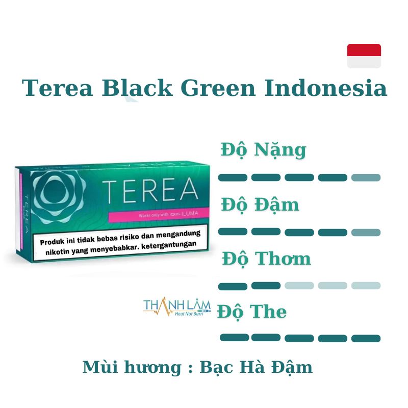 - TEREA Black Green Indo: Vị bạc hà đậm